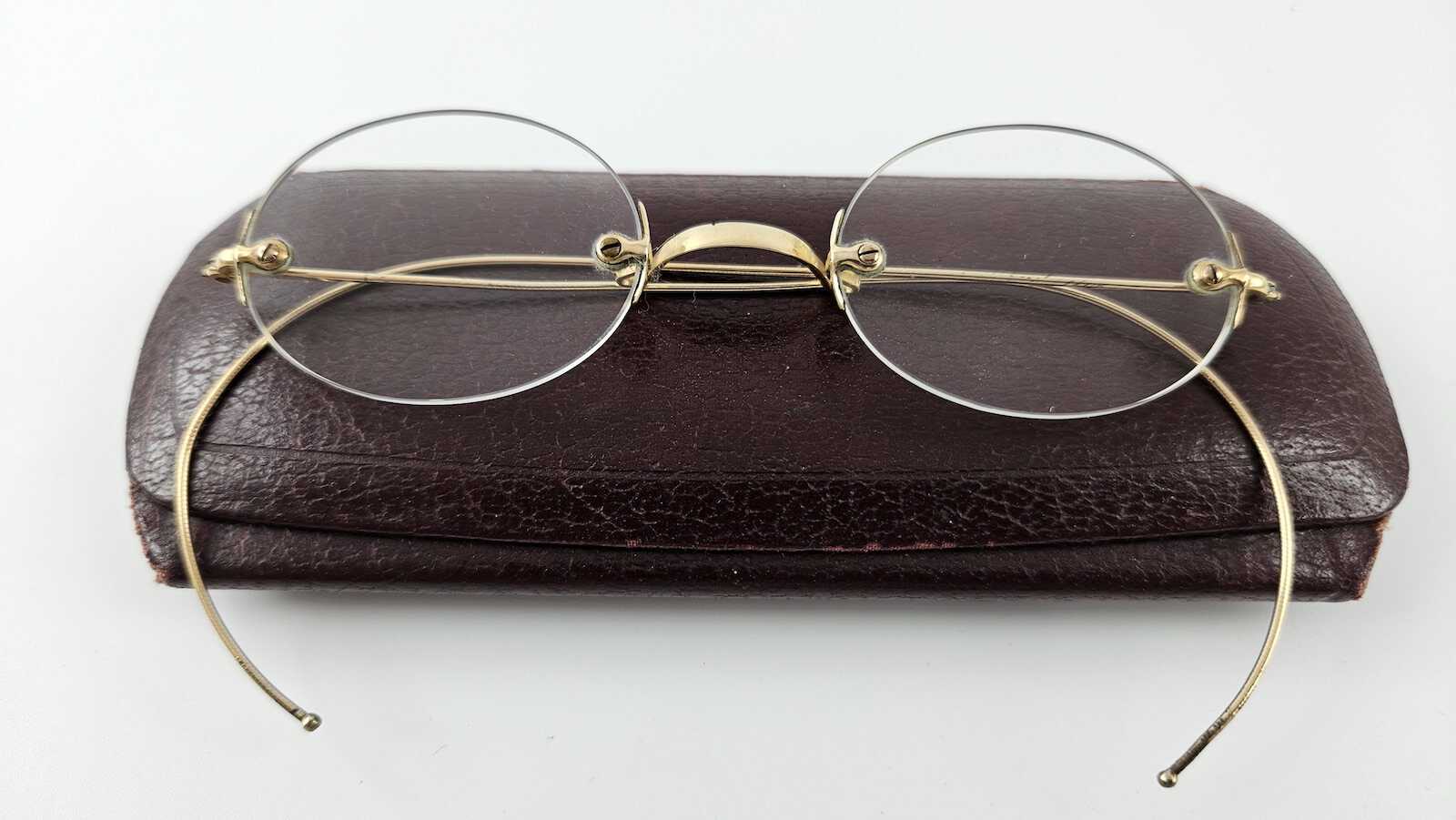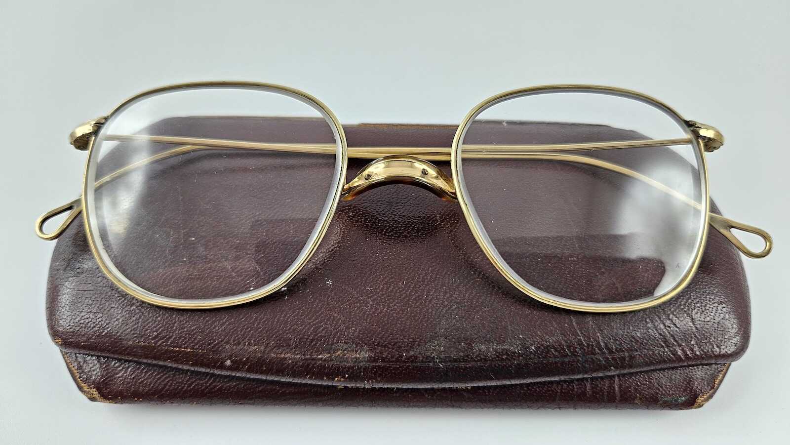 KC5189: gọng kính bọc vàng cổ xưa thập liên 1920 FRAME ENGLAND ngang kính 12,5cm