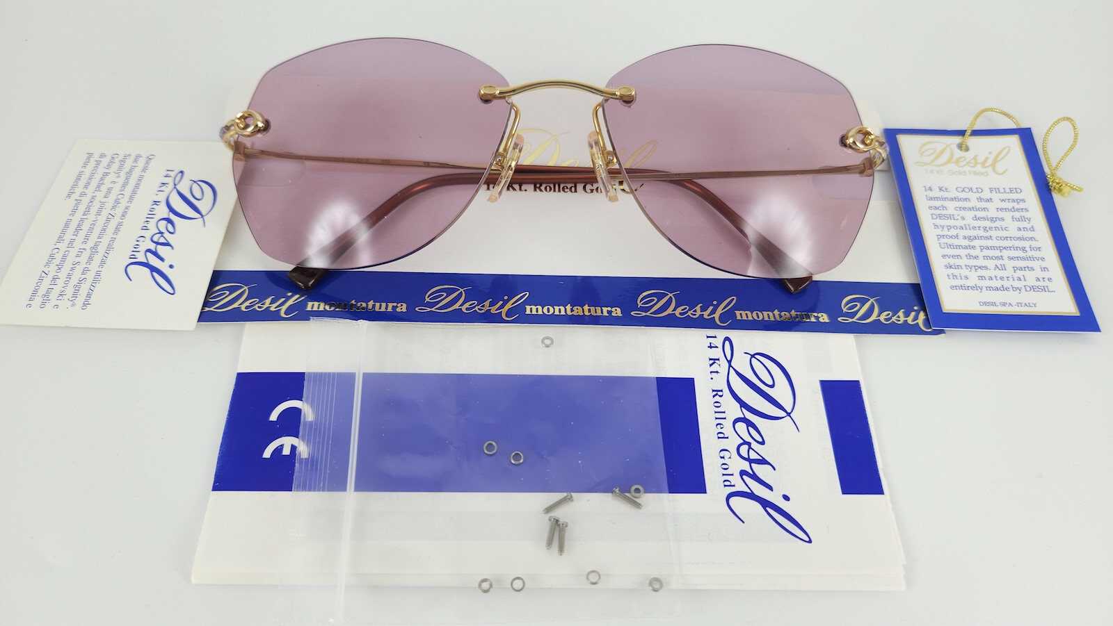 KC4085: kính mát DESIL BALI bọc vàng hồng Rolled Gold 14K Size 56-15 135 FRAME ITALY kính lưu kho đẹp nguyên