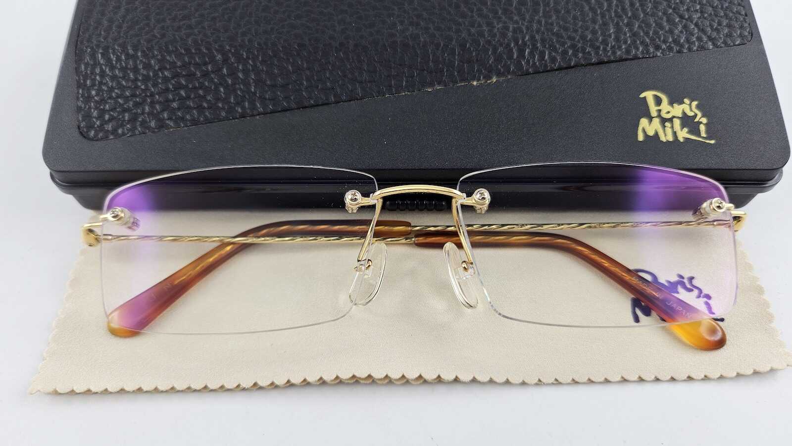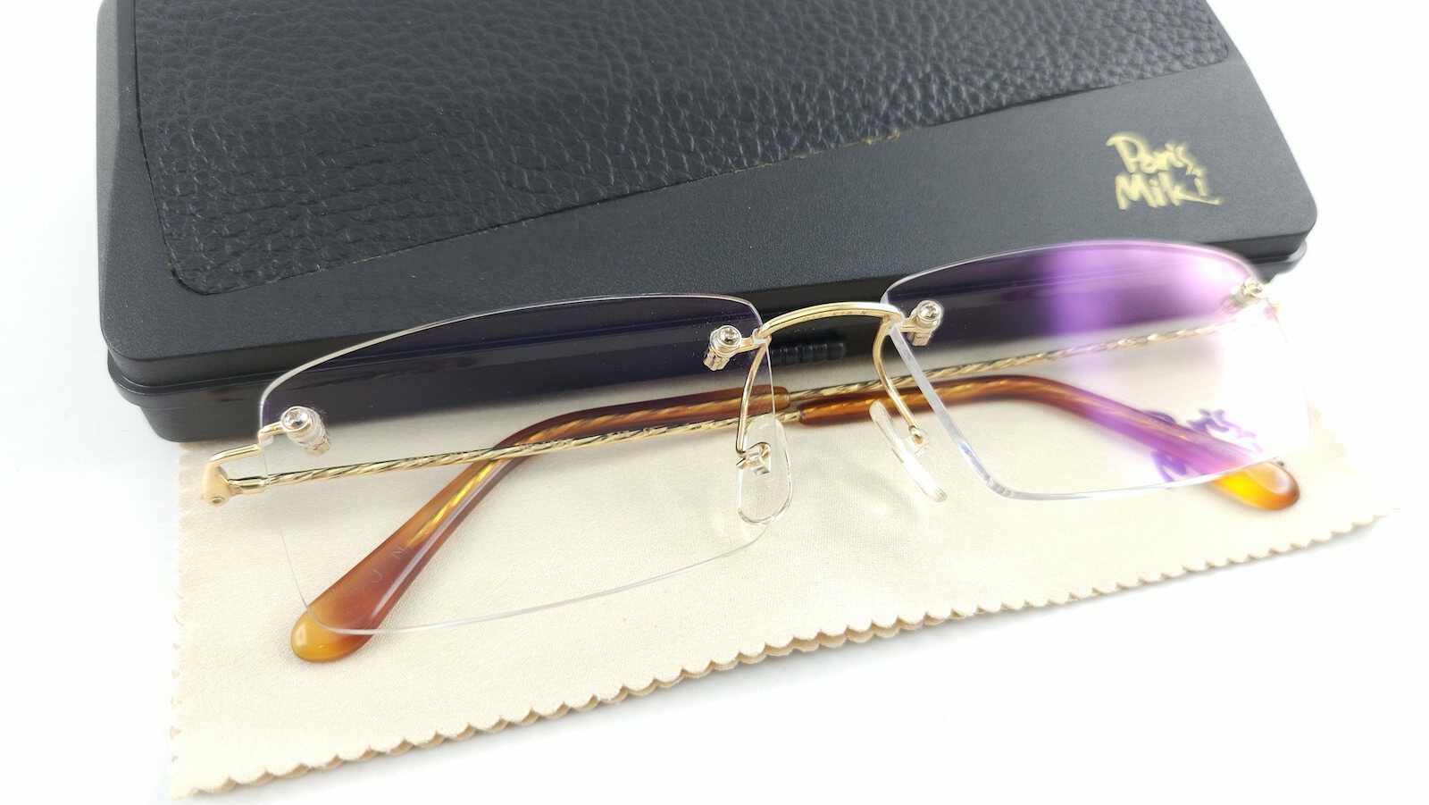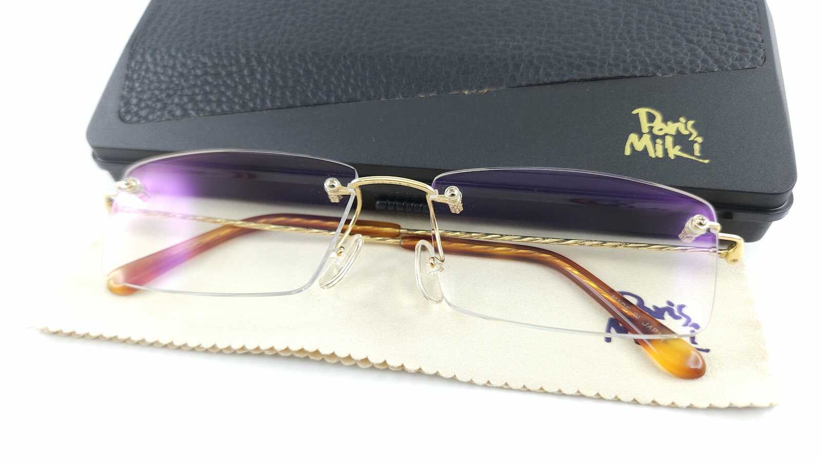KC5791: Gọng kính 3 mảnh PARIS MIKI SUPER SMOOTH AU-1490 vàng 18K nguyên khối Solid Gold size F16-135 MADE IN JAPAN
